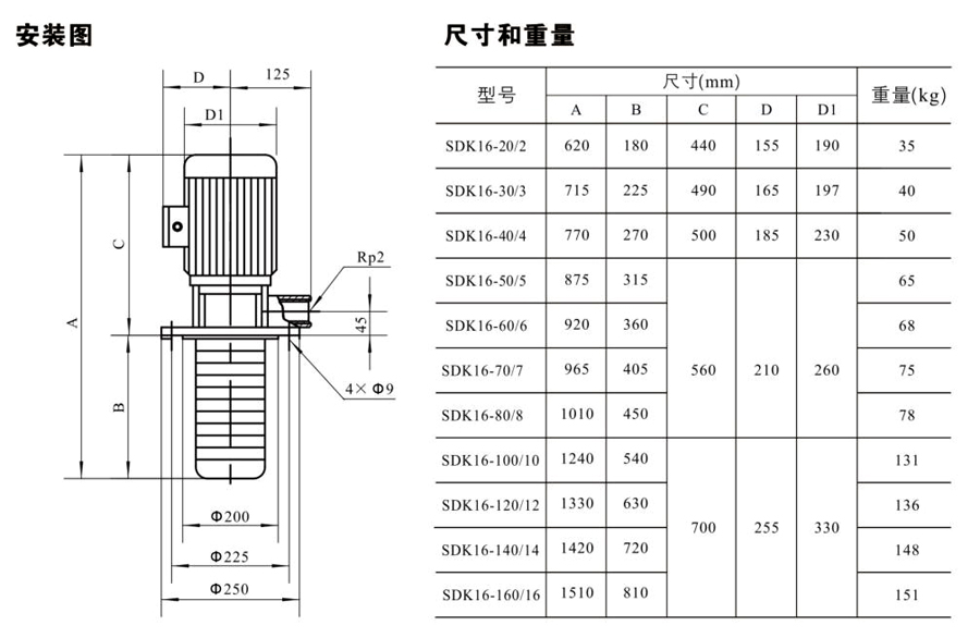 SDK16/SDKT16為配用標(biāo)準(zhǔn)電機(jī)的非自吸立式多級(jí)離心泵,電機(jī)軸和泵軸用聯(lián)軸器直接聯(lián)接的結(jié)構(gòu)。為滿足水槽或容器的安裝深度,可安裝空套的腔體來(lái)改變泵本身的侵入 深度。