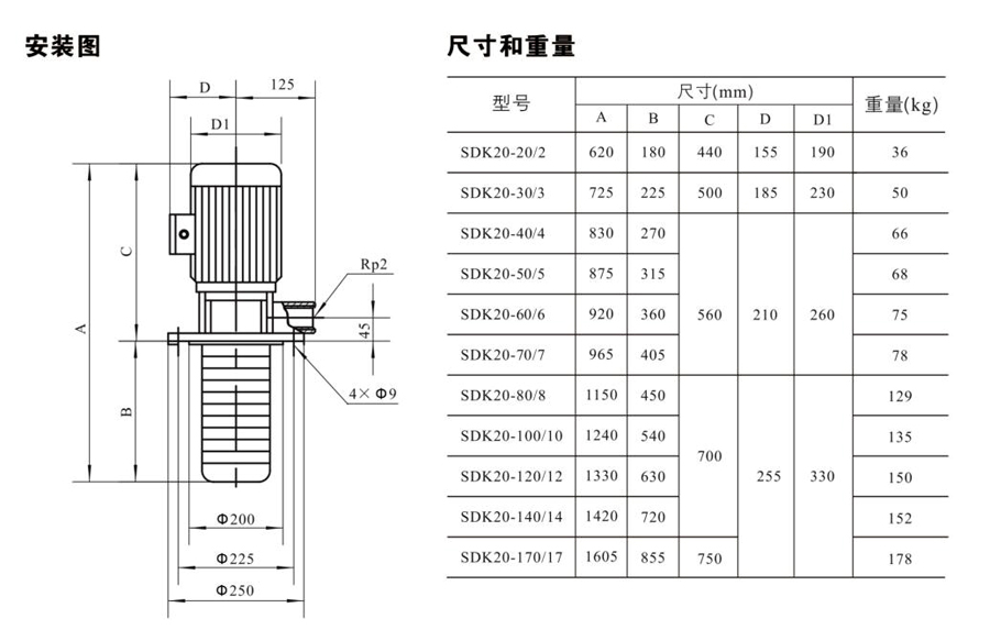 SDK20/SDKT20為配用標(biāo)準(zhǔn)電機(jī)的非自吸立式多級(jí)離心泵,電機(jī)軸和泵軸用聯(lián)軸器直接聯(lián)接的結(jié)構(gòu)。為滿足水槽或容器的安裝深度,可安裝空套的腔體來改變泵本身的侵入 深度。